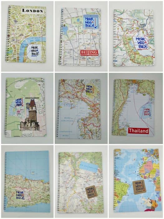 Ein handgemachtes Unikat aus Papier, das wir vor dem Verstauben gerettet haben und alten Schulheften die sonst im Müll gelandet wären. Die Buchdeckel sind aus ausgedienten Straßenkarten und Blockrückseiten gemacht.